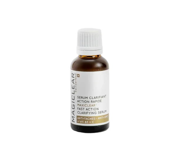Sérum clarifiant à action rapide de MAGICLEAR, ce soin intensif procure un teint parfaitement unifié et lumineux. Grâce à sa double action, ce sérum concentré réduit l’apparence des taches brunes et illumine progressivement la peau.